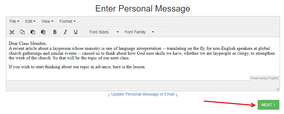 We provide a personal message for your class members to introduce the lesson, but you can always edit that message if you wish.